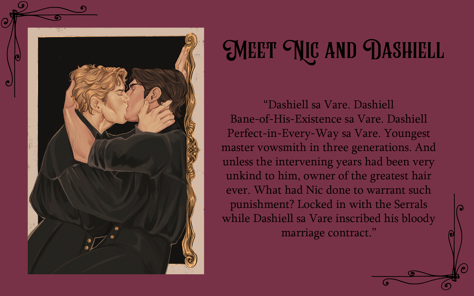 Tradition dictates the families are confined together while the marriage contract is crafted, which should be the worst part. Until Nic learns the Serrals’ head negotiator is master vowsmith Dashiell sa Vare—beautiful, perfect Dashiell sa Vare—an old flame he has neither forgiven nor forgotten. Nic’s only defense is false smiles and too much wine.